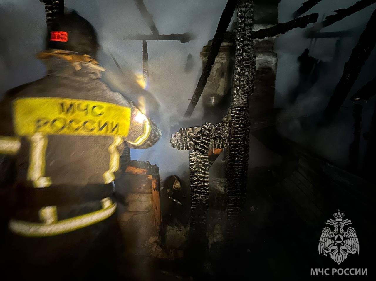 В борьбе с огнём было задействовано четыре единицы спецтехники и 14 человек. Финальную точку здесь поставили в половине третьего ночи, когда завершились проливка и разбор сгоревших конструкций. Причину случившегося устанавливают дознаватели МЧС.